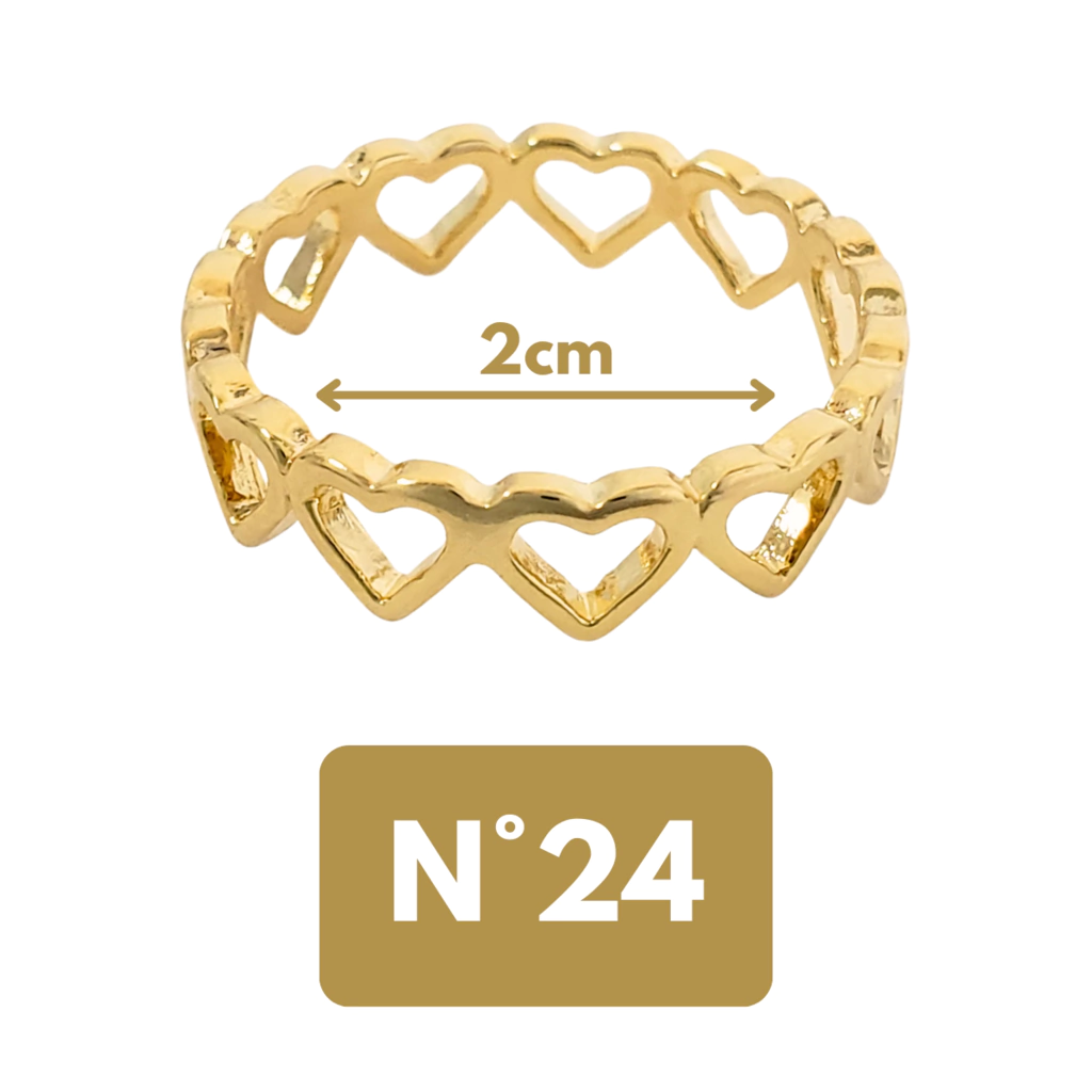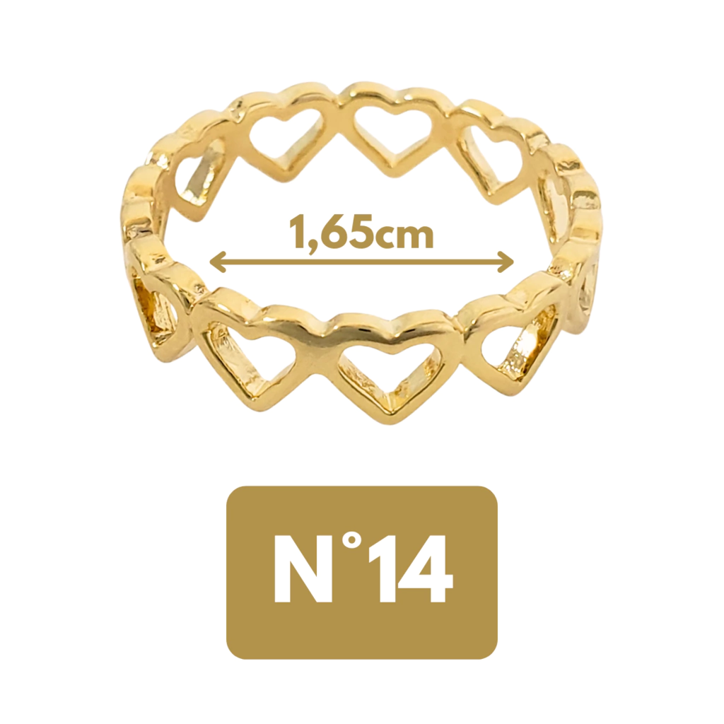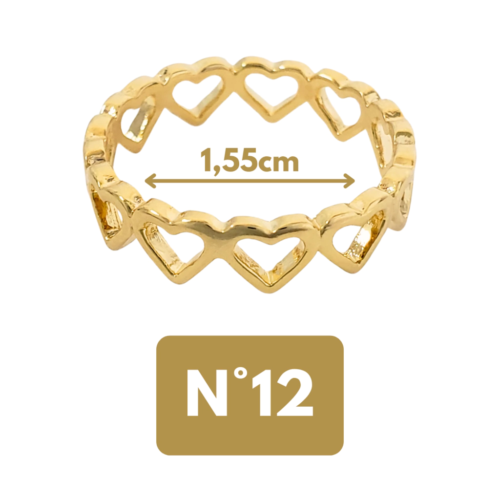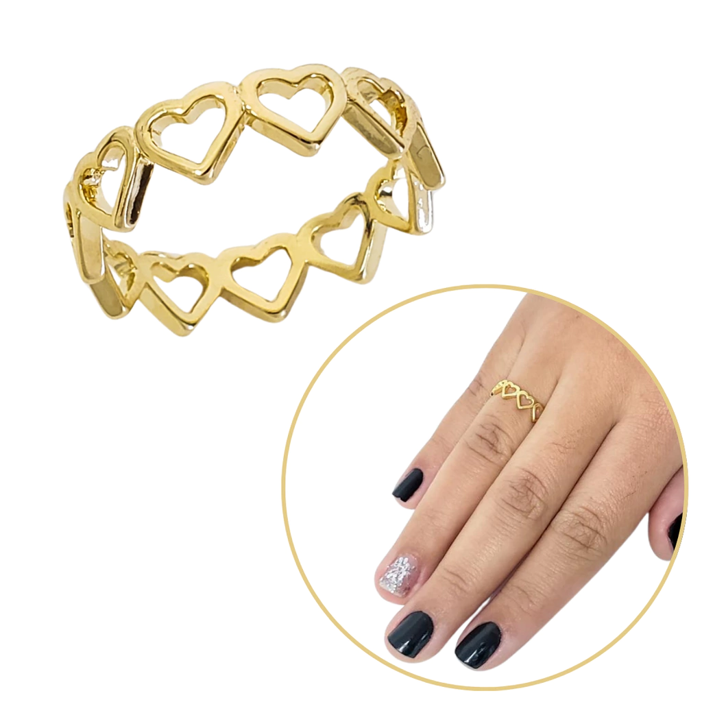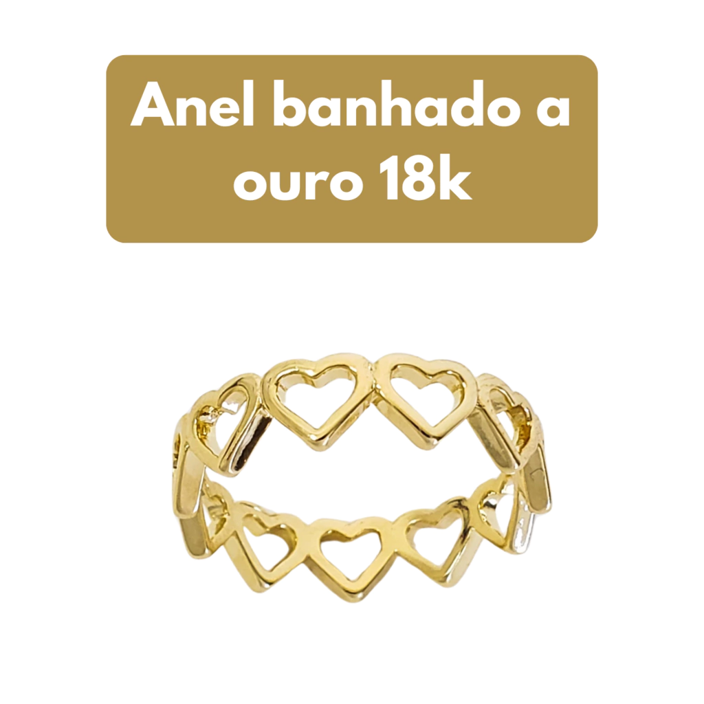 Um anel que captura a essência da delicadeza, um círculo de corações banhado em ouro 18k. Um lindo acessório para seu dia-a-dia, que pode ser ressaltado combinado com outros anéis.