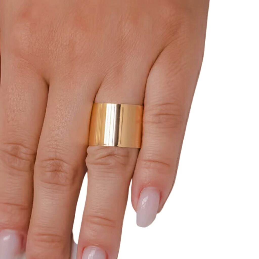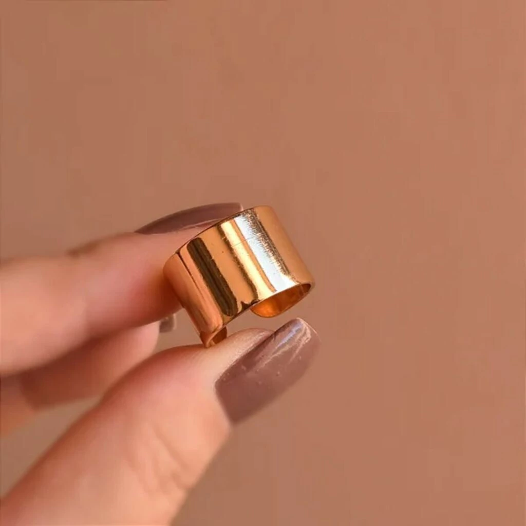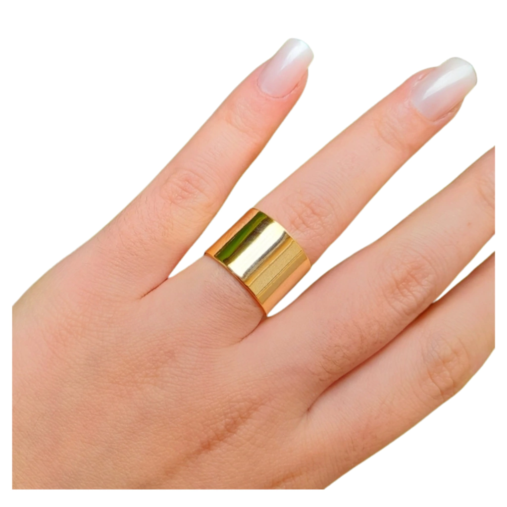 Anel liso largo ajustavél banhado em ouro 18k delicado antialérgico serve para todas as medidas de aneis ideal para o seu dia a dia, para compor mix com outros anéis ou até em mais dedos.