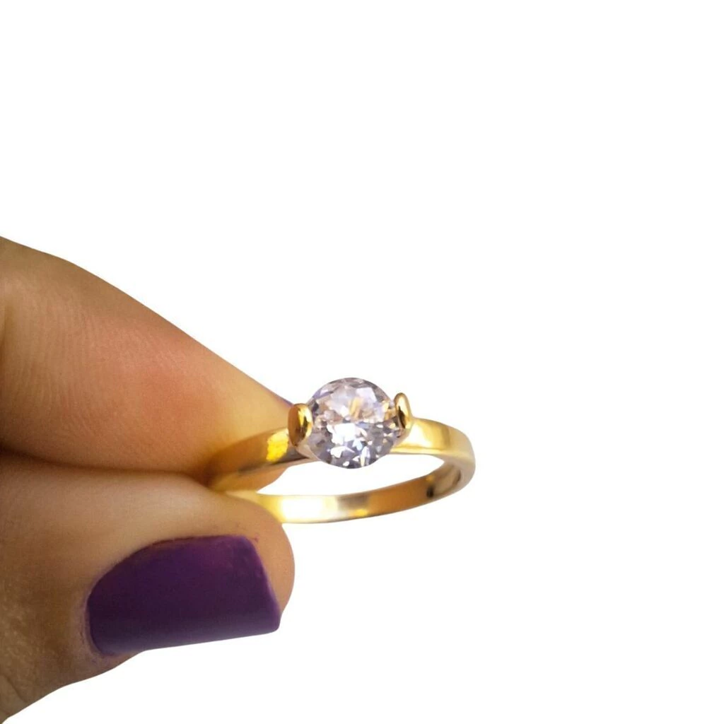 Anel Solitário Com Zircônia Noivado Antialérgico Ouro 18k Banhado com garantia