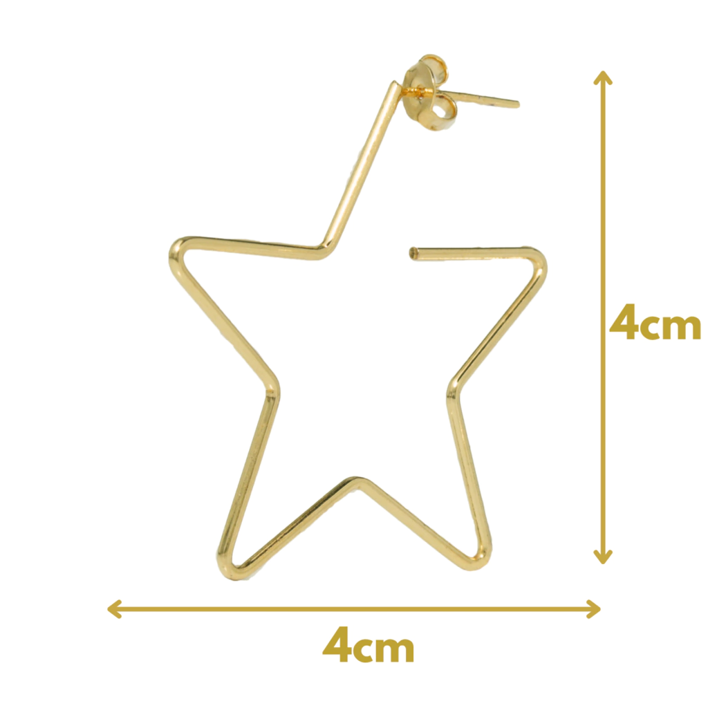 Vivencie a elegância desta argola de estrela dourada, com um design médio e sofisticado, essa argola é banhada a ouro 18k, garantindo uma ótima durabilidade. Ela oferece conforto para peles sensíveis com seu material antialérgico e é perfeita para complementar qualquer look.