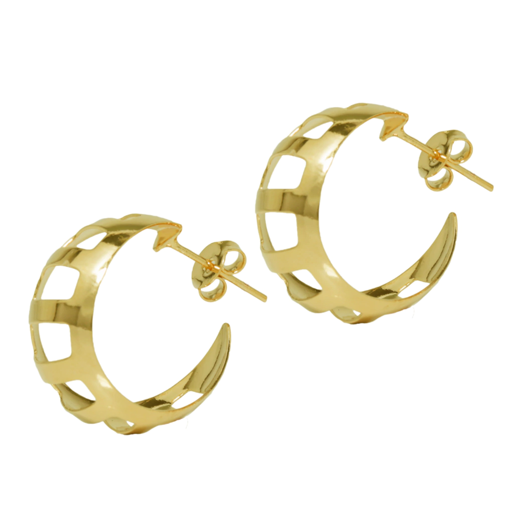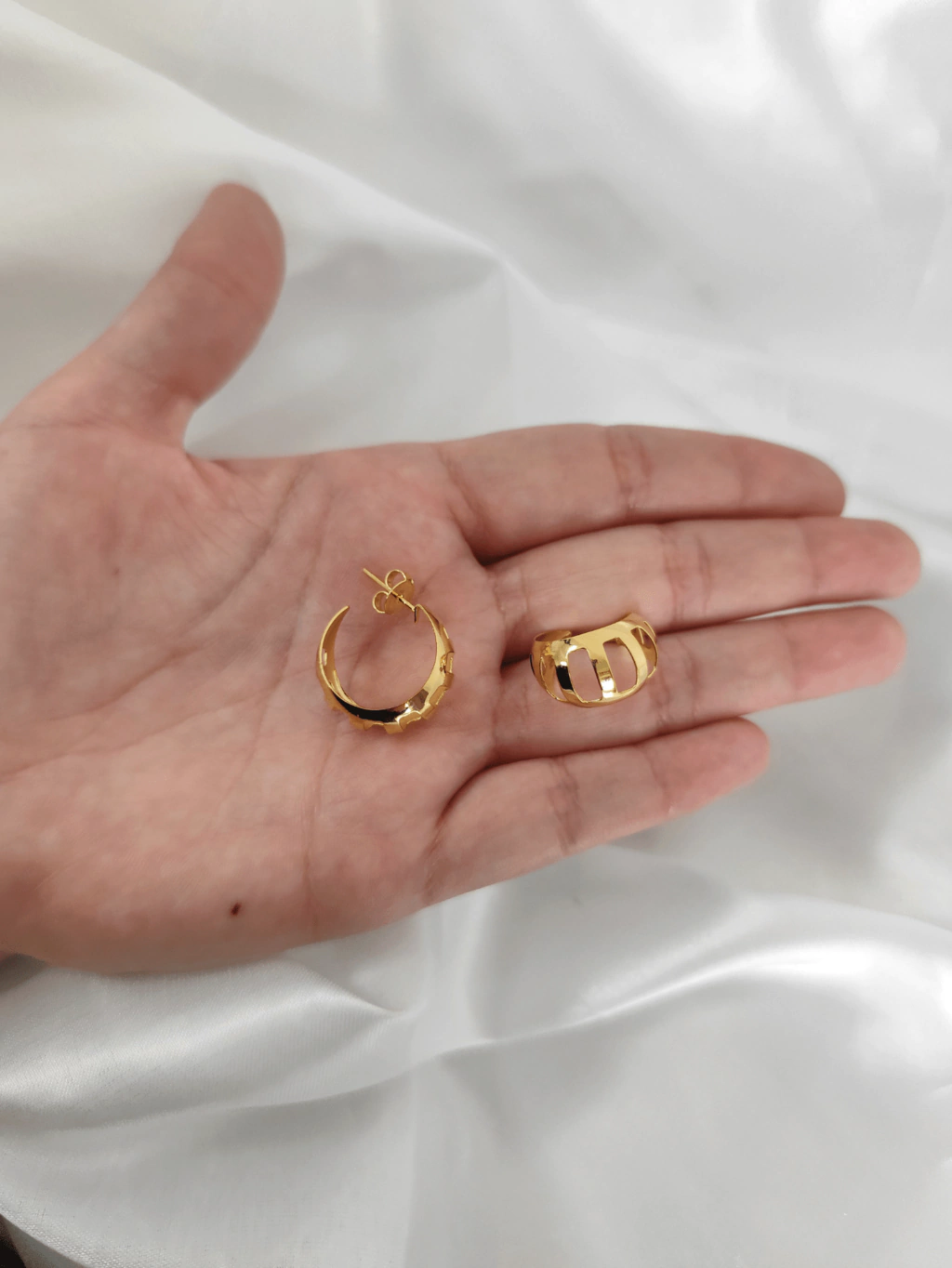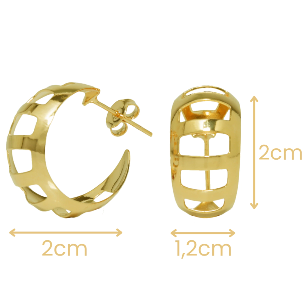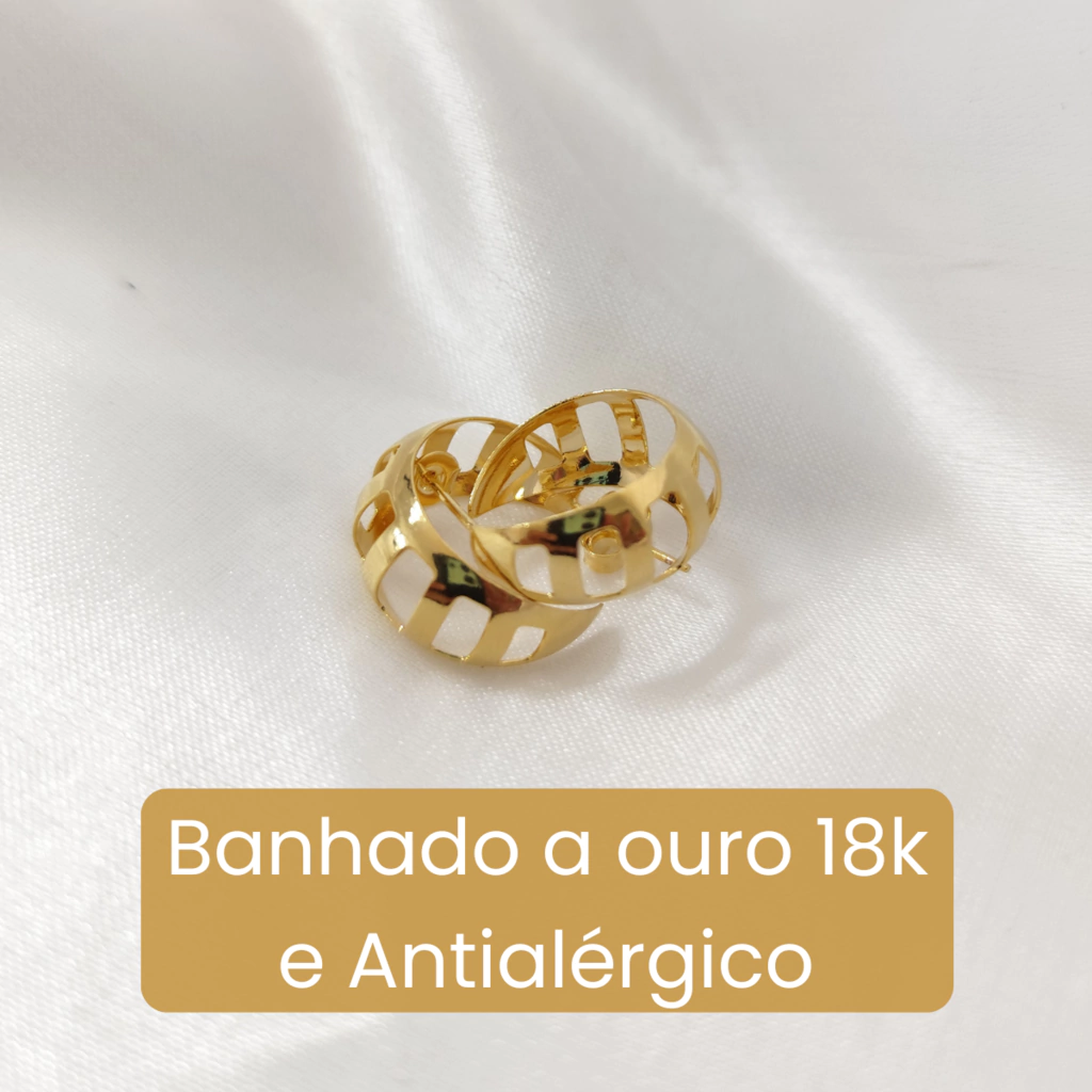 Eleve seu estilo com esta Argola Pequena Vazada, uma peça moderna e sofisticada. Banhada a Ouro 18k, oferece um brilho luxuoso e duradouro. O design é vazado e largo, conta com um fecho de tarraxa o que a torna versátil e elegante, além de ser antialérgica.