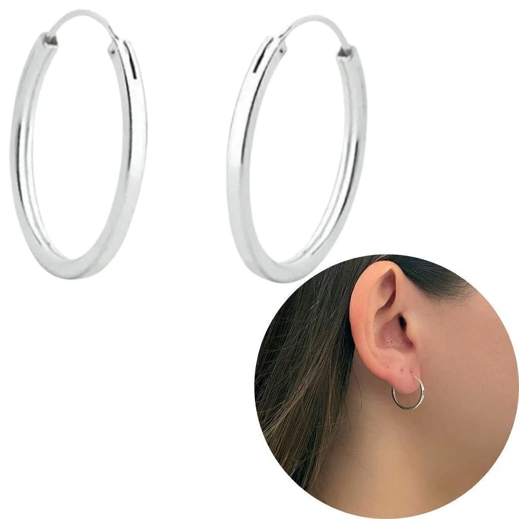 Brinco Argola Masculina e Feminina Fio Quadrado Grosso 2 Mm Em Prata 925 Legítima