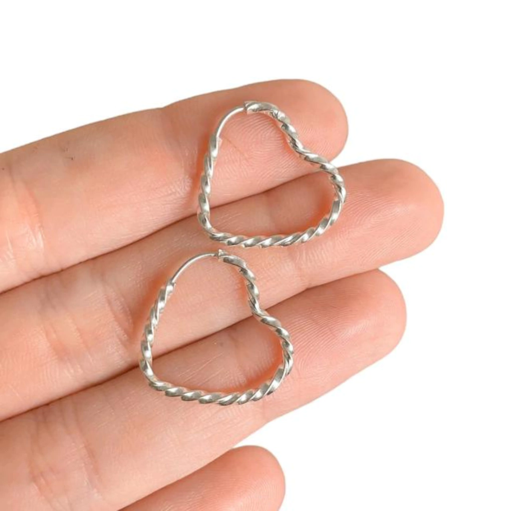 Brinco Argola coraçao torcida prata legítima 925 2cm