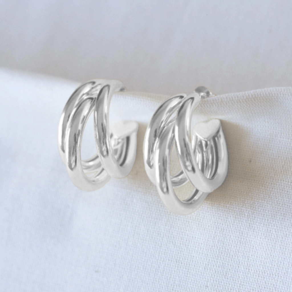 Semijoia banhada a Prata 925, uma argola tripla maravilhosa e estilosa para quem quer compor um look com classe. Produto antialérgico, com alta durabilidade, perfeito para presentear ou aumentar sua auto estima.