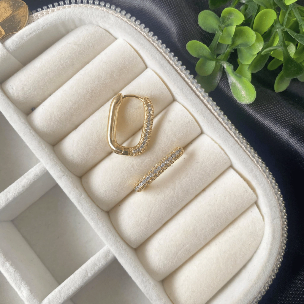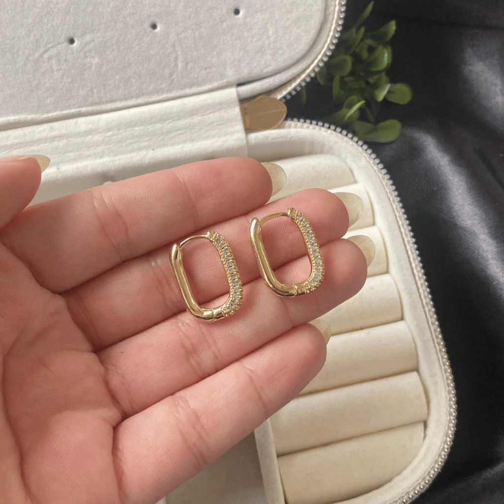 Lindo modelo de Brinco Cravejado, um verdadeiro símbolo de sofisticação e charme. Banhado a Ouro 18k, ele tem um brilho e durabilidade excepcionais, indispensável no seu conjunto de acessórios. Seja para um evento formal ou para um toque de elegância no dia a dia, este brinco é a escolha perfeita. Ele conta com um fecho click, pequenas zircônias cravejadas e é totalmente antialérgico.