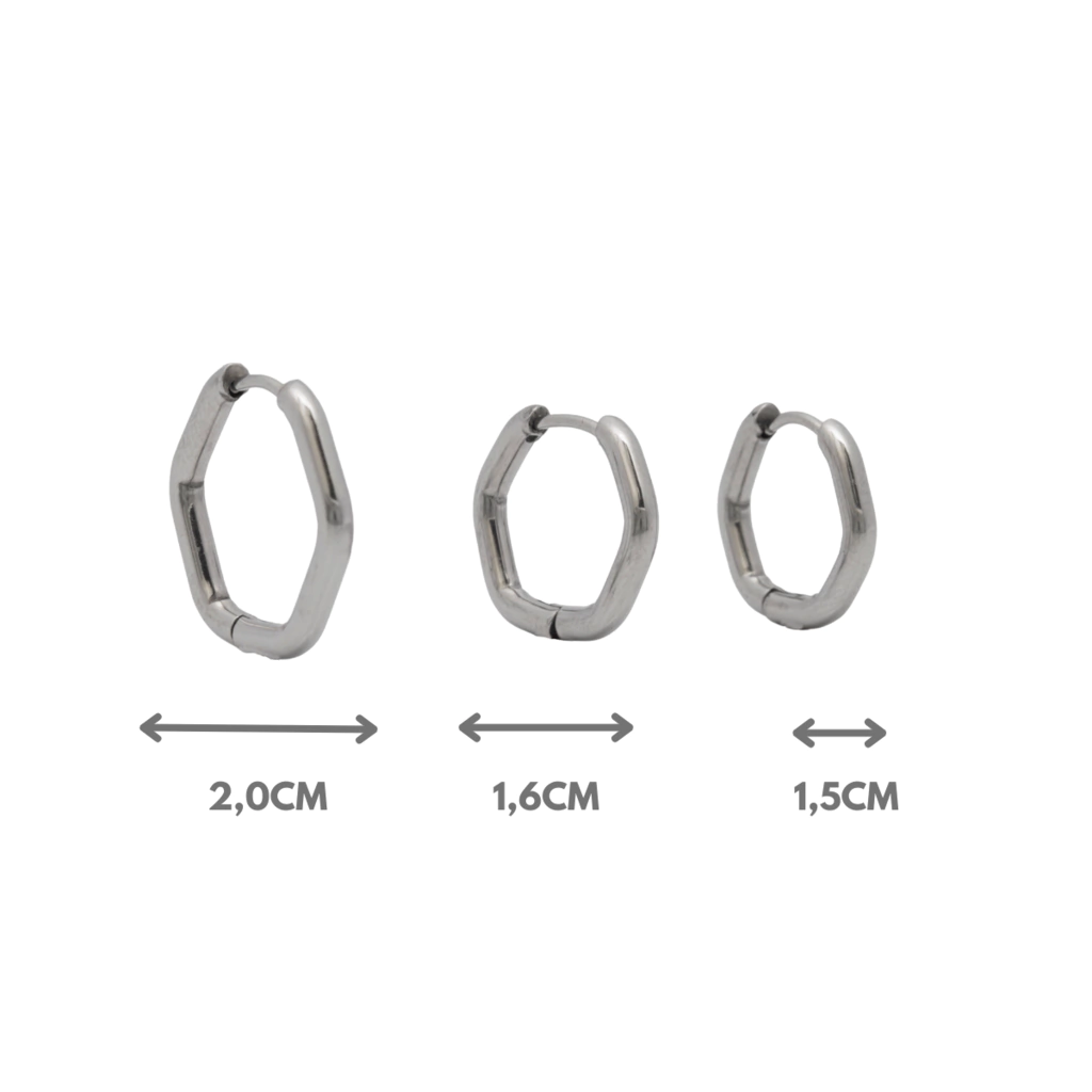 Brincos Trio de Aço Cirúrgico Hexágono Vazado Antialérgicos.