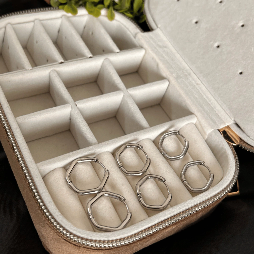 Este trio de brincos em formato de hexágono vazado é feito em aço cirúrgico antialérgico, garantindo conforto e segurança para o uso diário. Seu design geométrico moderno traz sofisticação e originalidade ao visual, perfeito para quem busca estilo e durabilidade em um único acessório.