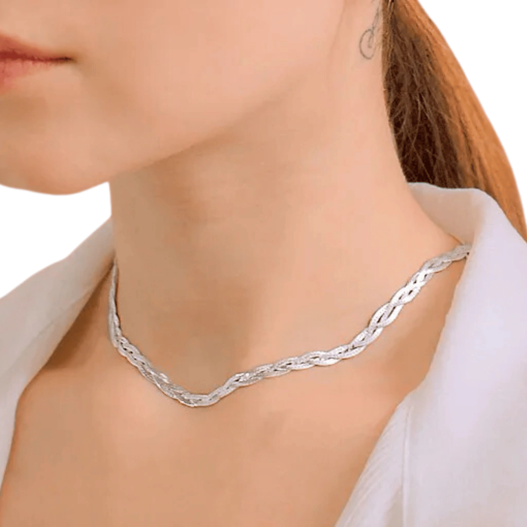 Lindo modelo de chocker 3 fios, trançado todo detalhado banhado a prata 925 antialérgico e com excelente durabilidade. Podendo ser usado sozinho no dia a dia ou ideal também para compor um mix de colares a sua escolha.