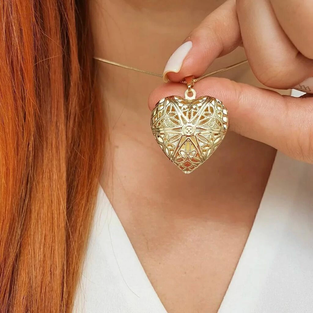 Lindo modelo de relicário banhado a ouro 18k. Perfeito para colocar uma linda foto. Colocação da foto cortesia da loja. Tamanho do coração 2,5cm x2,5cm
