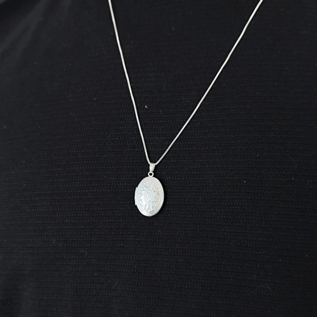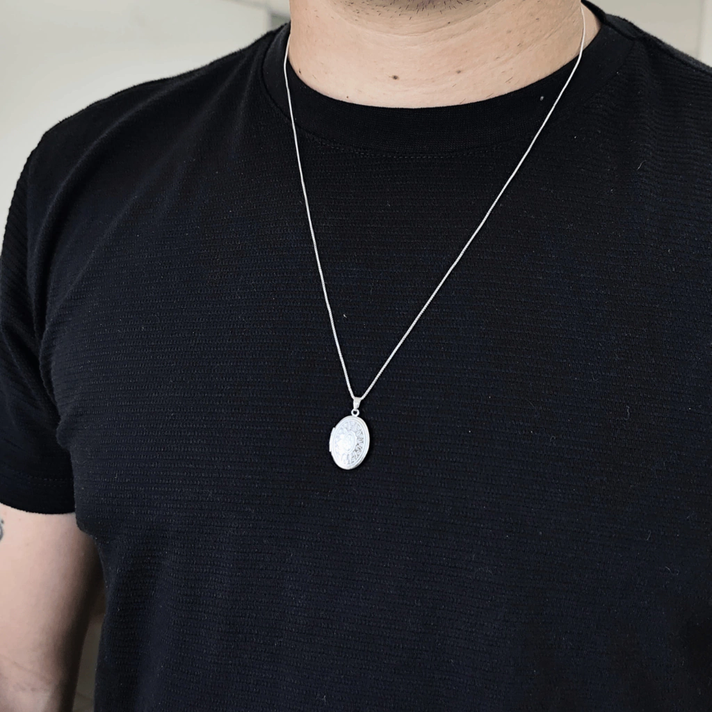O relicário e a corrente são banhados a ouro 18k (dourado) ou banhados em prata 925 com verniz italiano para alta durabilidade (prateado). São feitos com tecnologia SEM NIQUEL, sendo assim, antialérgicos.