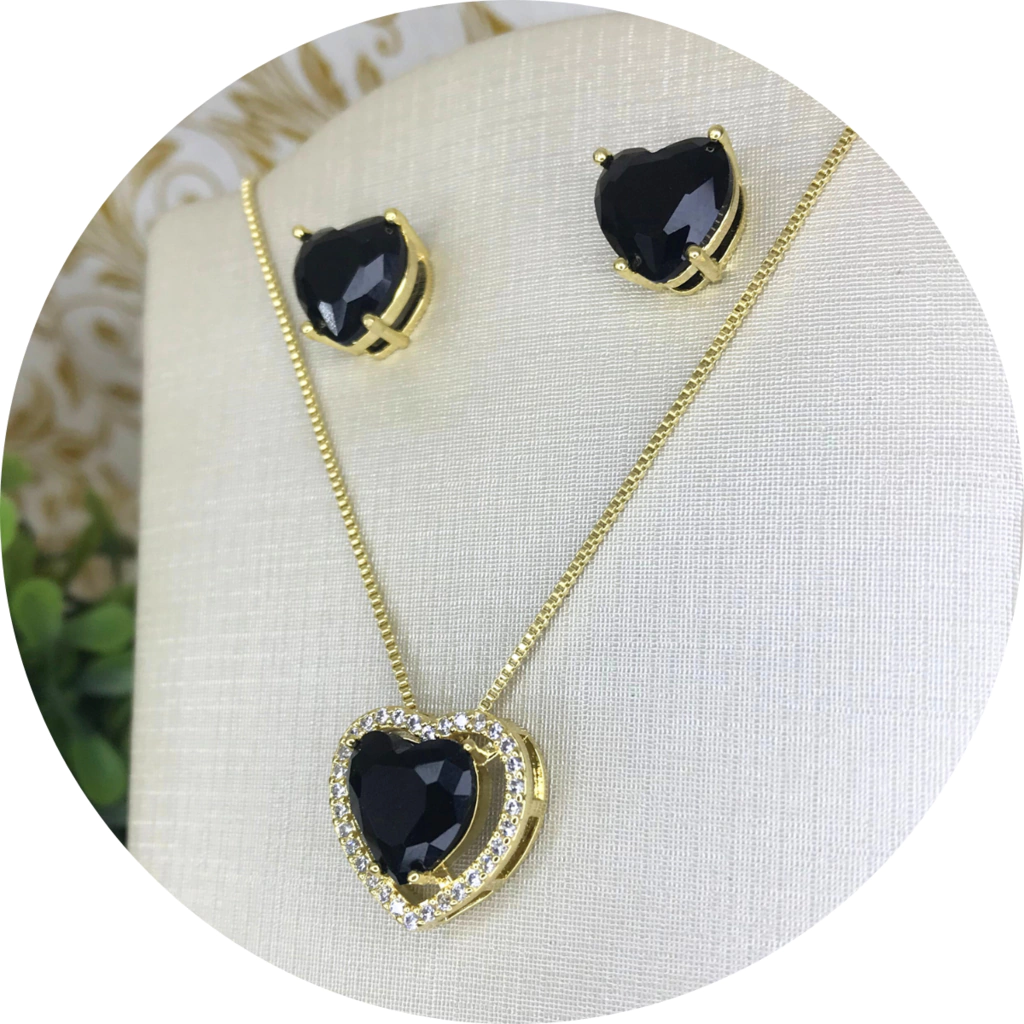 Brinco formato coração 10mm preto banhado em ouro 18k delicado antialérgico ideal para todas ocasiões com 6 meses de garantia.