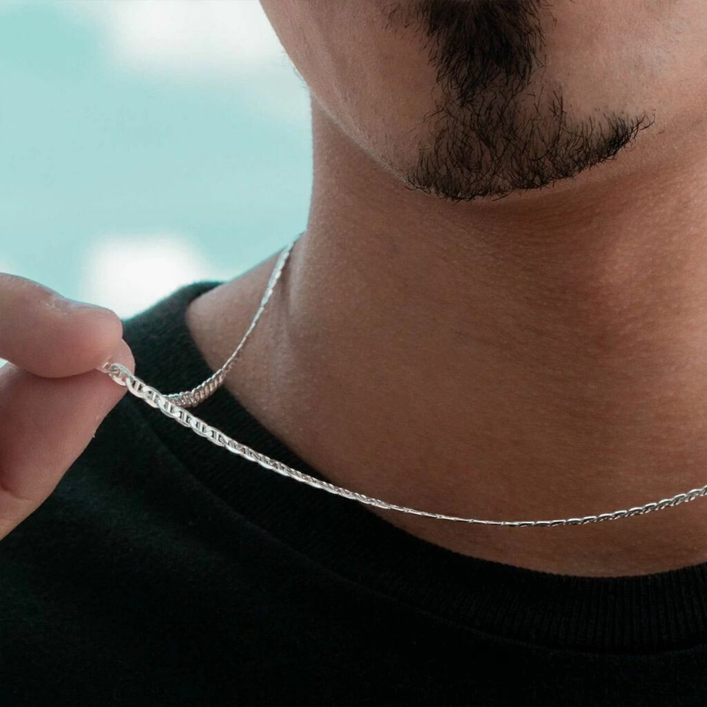 Um acessório elegante e sofisticado ideal para pessoas que valorizam e apreciam a beleza da prata, essa corrente é confeccionada inteira em prata 925, que significa uma liga com pureza de 92,5%.