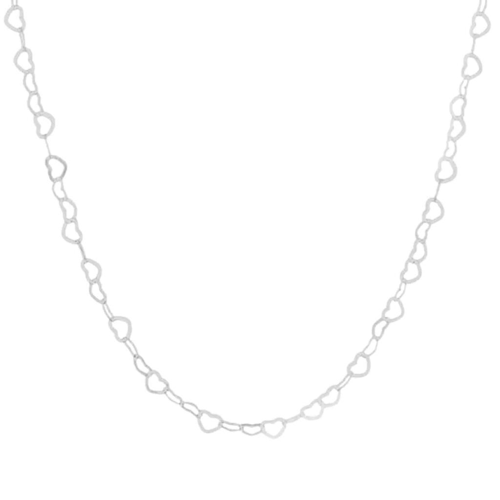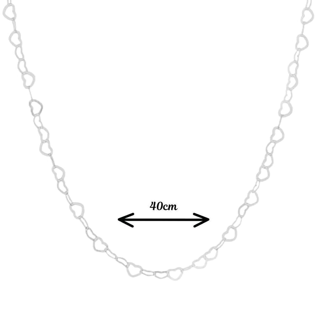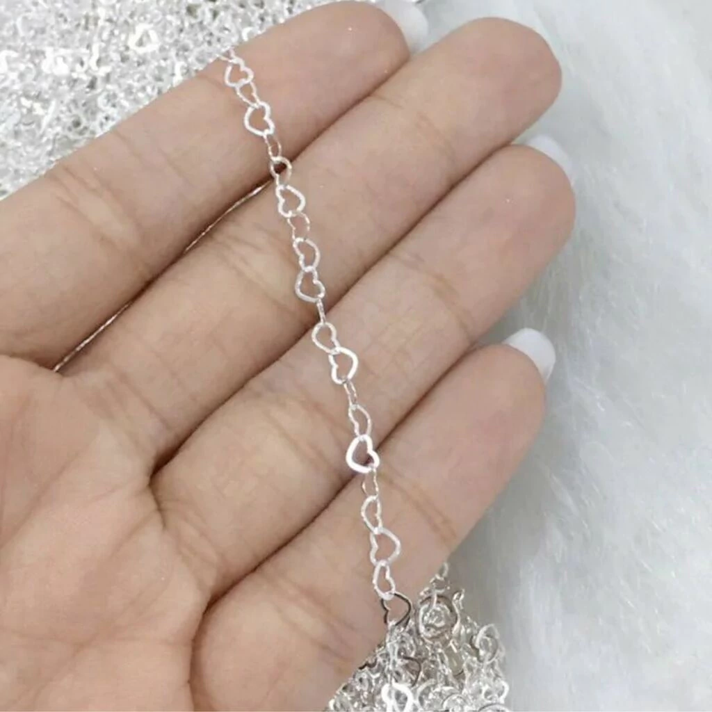 Corrente Elo de Corações 40cm confeccionada em Prata 925, famosa Prata de Lei, com alto valor no mercado de Joias.