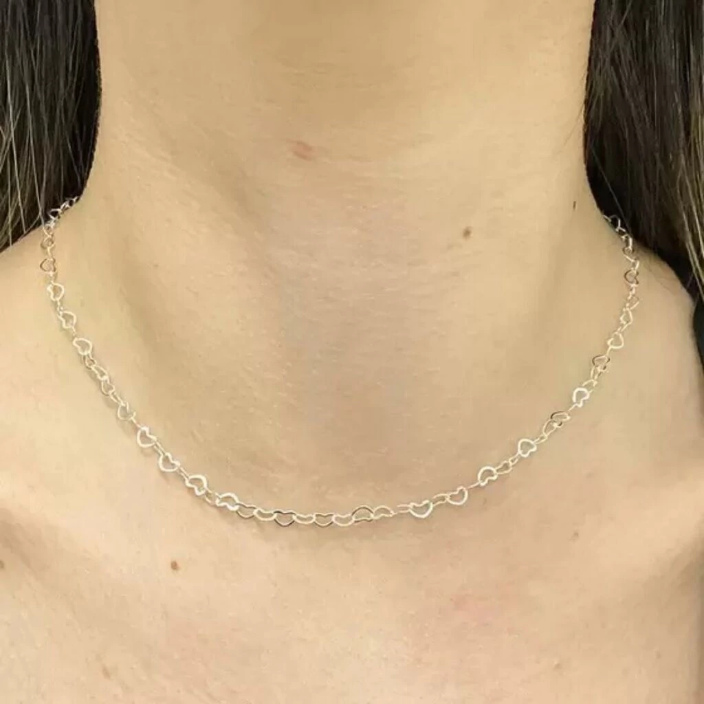 Colar choker coração Banhado a Prata feminino. Descrição Geral Uma delicadeza esse colar elos de coração produto de ALTA QUALIDADE, LINDO E DELICADO.