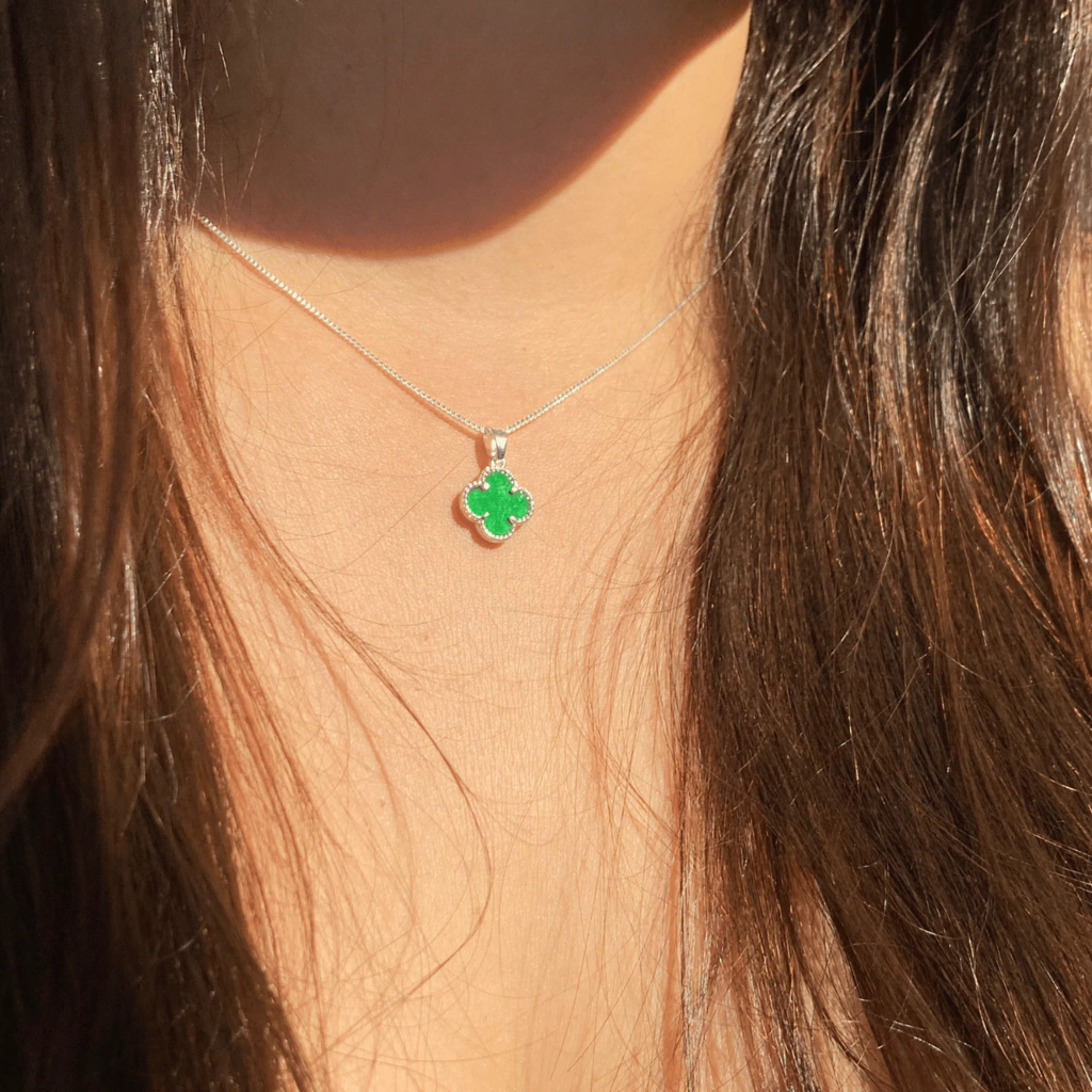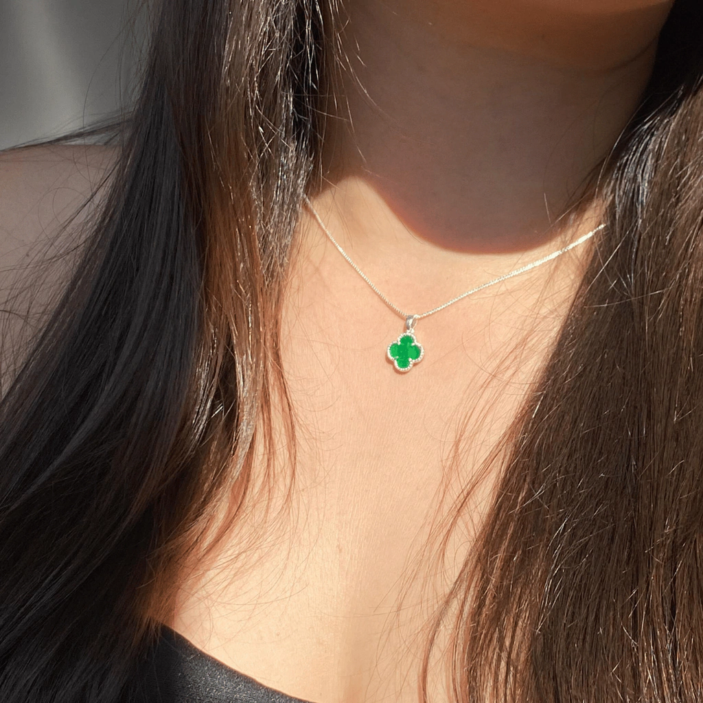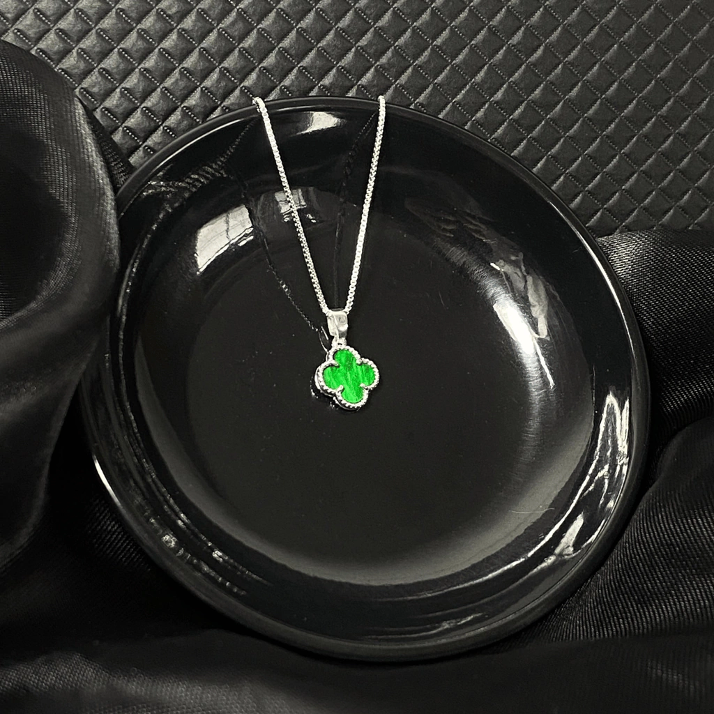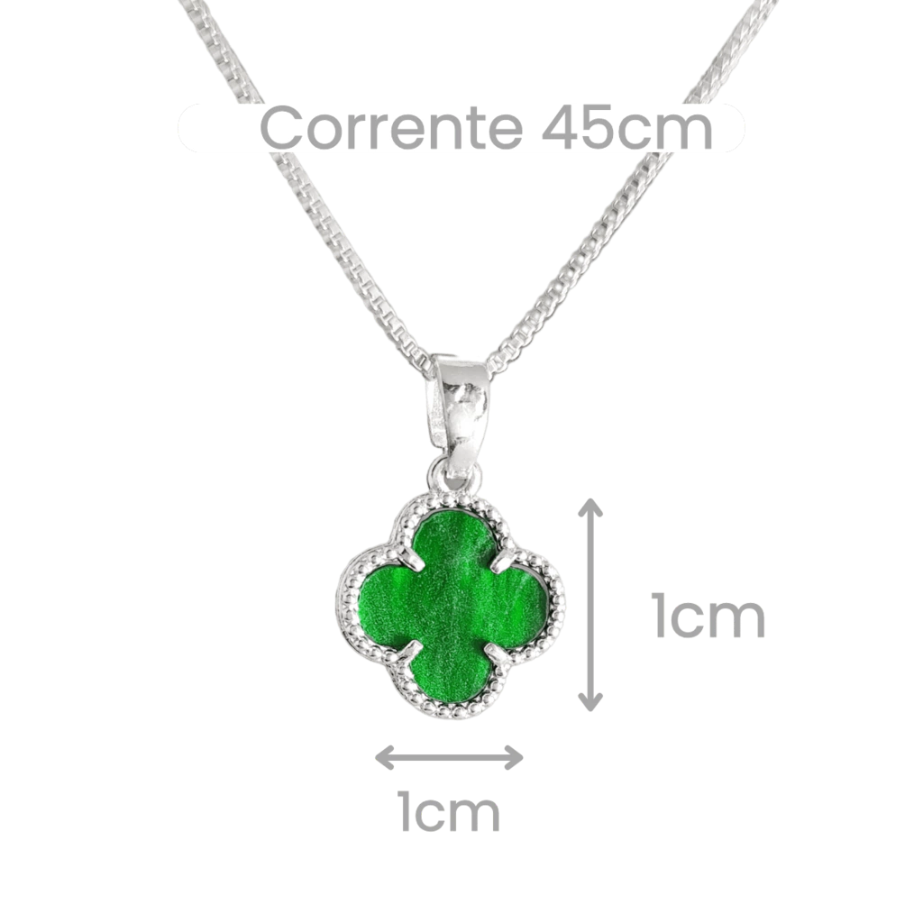 Trevo Verde, composto por corrente e pingente banhados a prata no Modelo Virgínia, é a peça ideal para quem busca um toque de frescor e sofisticação. O trevo verde traz um charme único e energizante, perfeito para dar aquele up no seu visual com elegância e estilo. Um acessório versátil que combina facilmente com diferentes ocasiões.