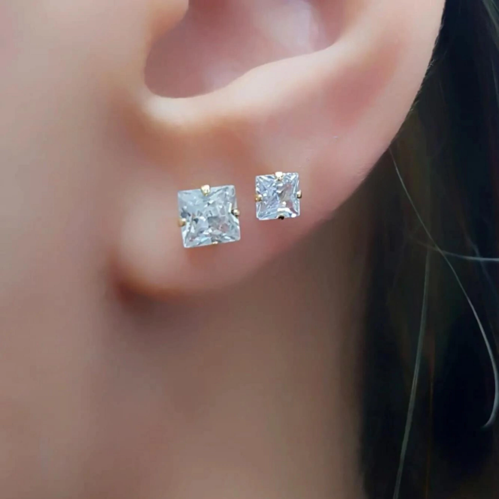 Brinco duplinha de ponto de luz Banhada a ouro 18k cravejada com Zircônia com banho de excelente qualidade.