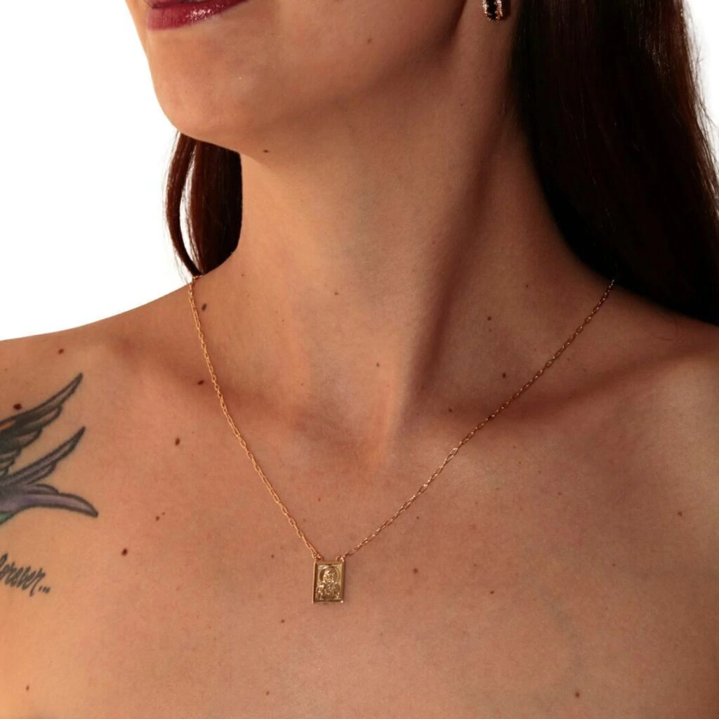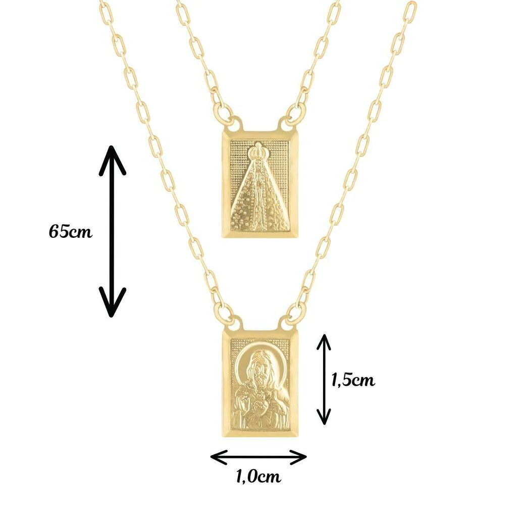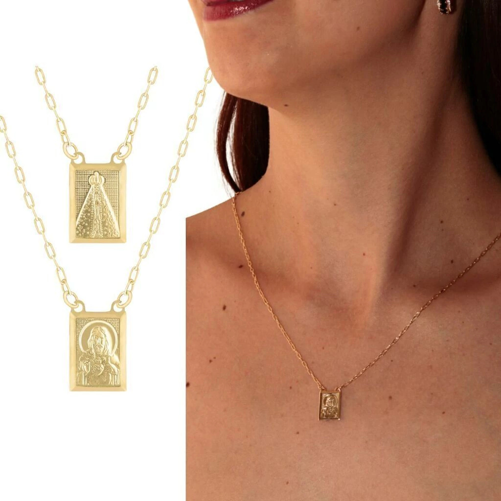 escapulário corrente 65cm sagrado Coração / N. Sra. aparecida banhado em ouro 18k antialégico ideal para o seu dia a dia