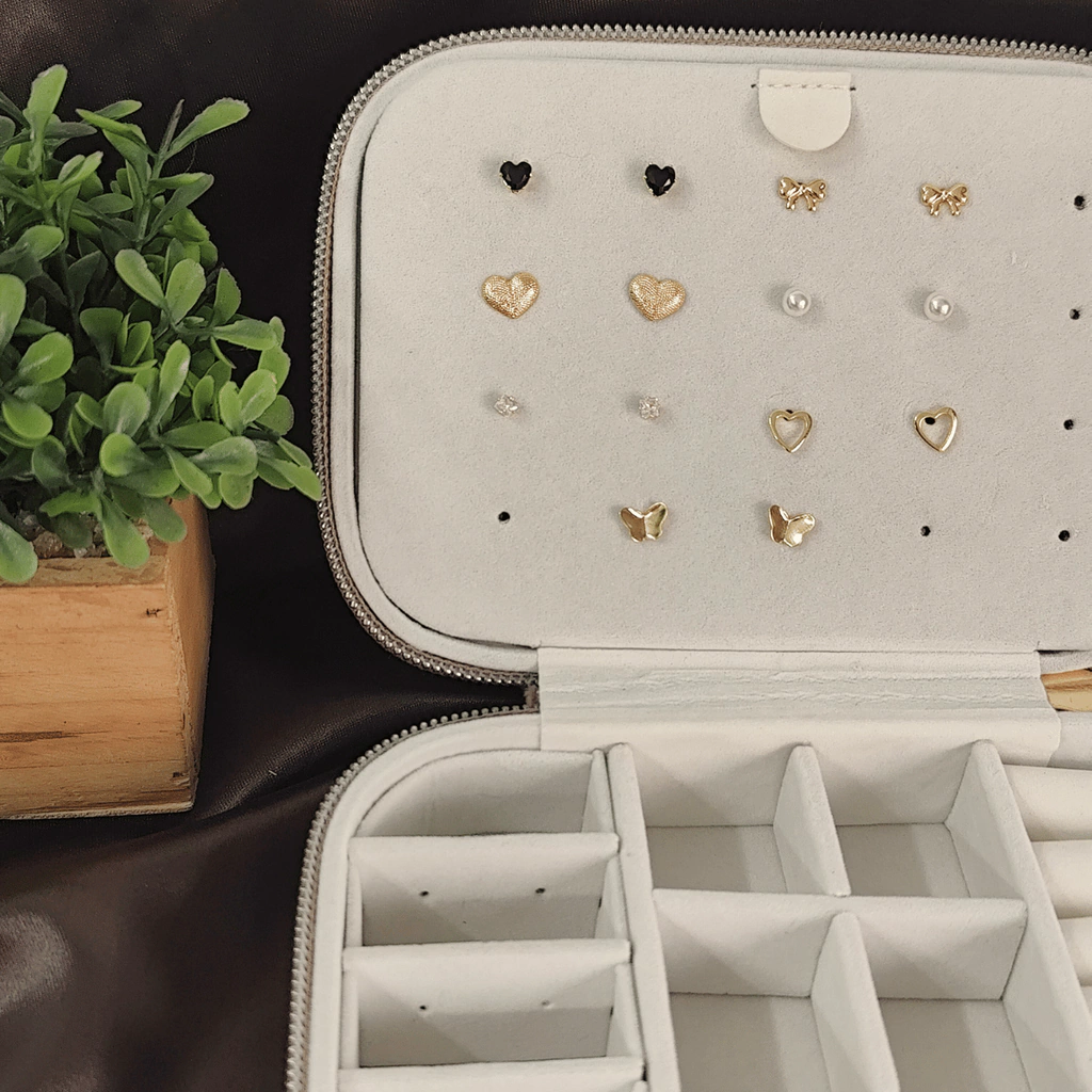 Conjunto de 7 brincos, um para cada dia da semana, oferecendo variedade e estilo de segunda a domingo. Banhados a ouro 18k, são totalmente antialérgicos e seguros para todos os tipos de pele, garantindo elegância e conforto para o dia a dia