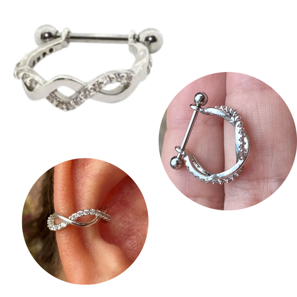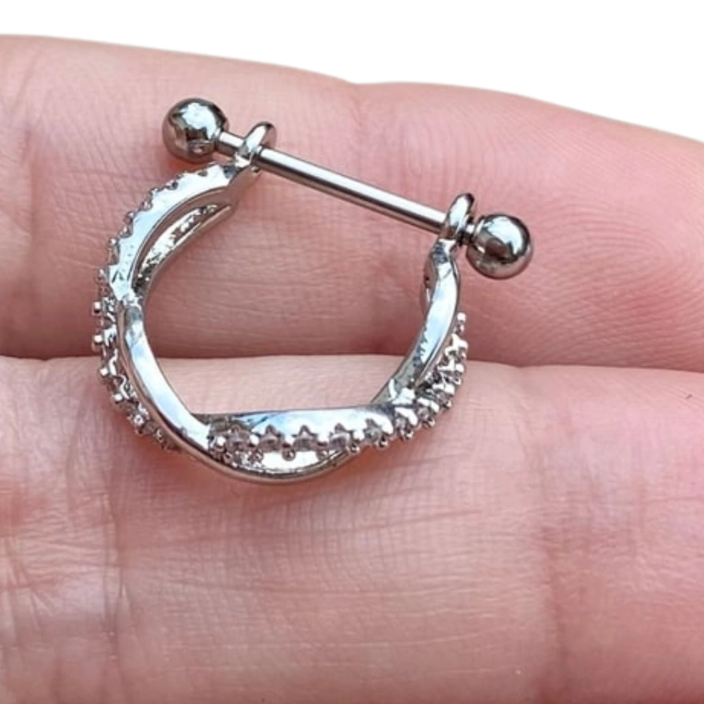 Piercing Confeccionado em Prata 925 com a Haste e Bolinhas em Aço Cirúrgico da série 300 com pedra de zirconia de primeira linha