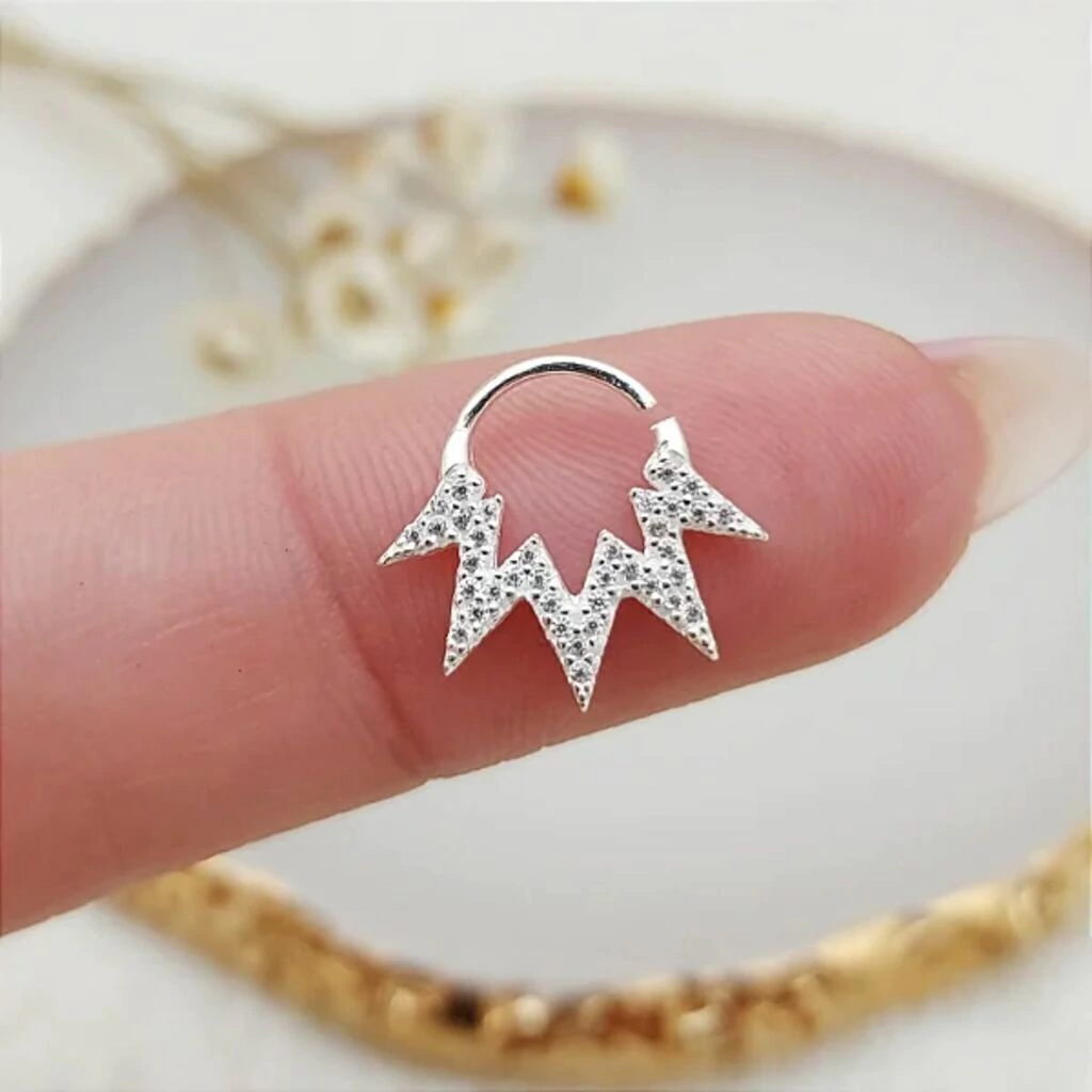 Piercing de argola Cravejado com pontas Estilo indiano em formato raios