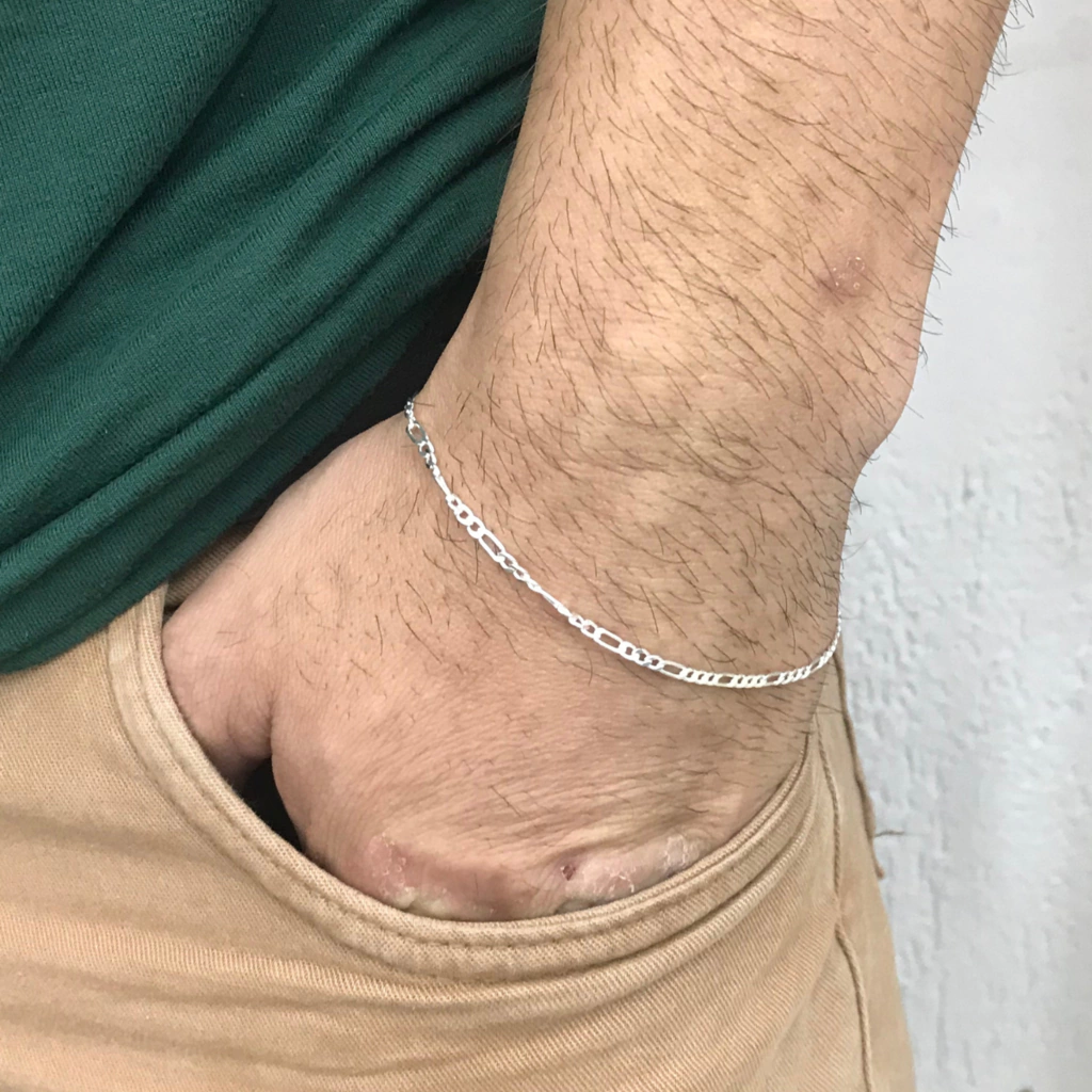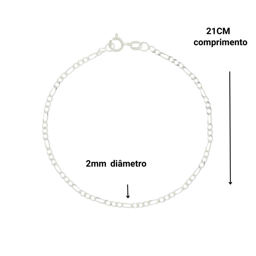 Pulseira de elo 3x1 confeccionada na prata 925 legítima, medindo 21 cm de comprimento e 2mm de largura.