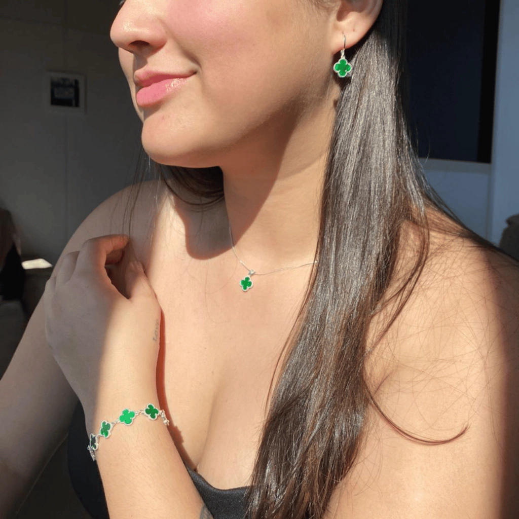 A Pulseira Trevo Verde, banhada em Prata 925 no estilo clássico Virginia, é a escolha perfeita para trazer sorte e sofisticação ao seu dia a dia. Com acabamento impecável e design delicado, é uma peça versátil que complementa qualquer look com elegância. Ideal para quem valoriza acessórios cheios de estilo e significado, ela combina charme e qualidade em cada detalhe.