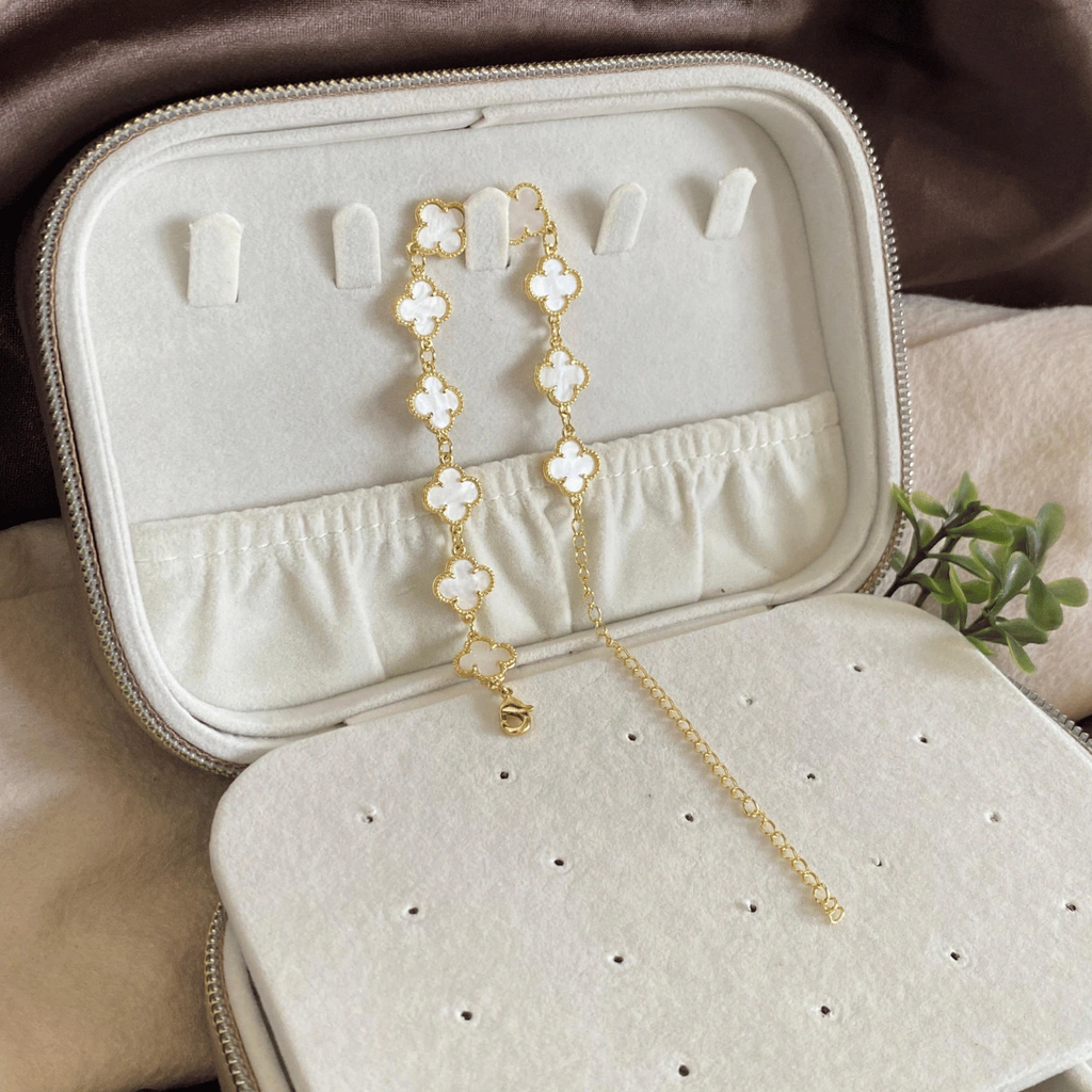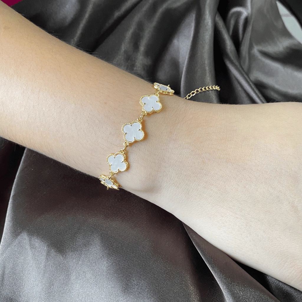 A Pulseira Trevo Modelo Virgínia, banhada a ouro 18k, é a combinação perfeita de delicadeza e sofisticação. Seu design minimalista e elegante traz um toque de leveza e charme para qualquer ocasião. Ideal para complementar looks clássicos ou modernos, garantindo versatilidade e estilo. Uma peça especial que transmite elegância e significado ao mesmo tempo.