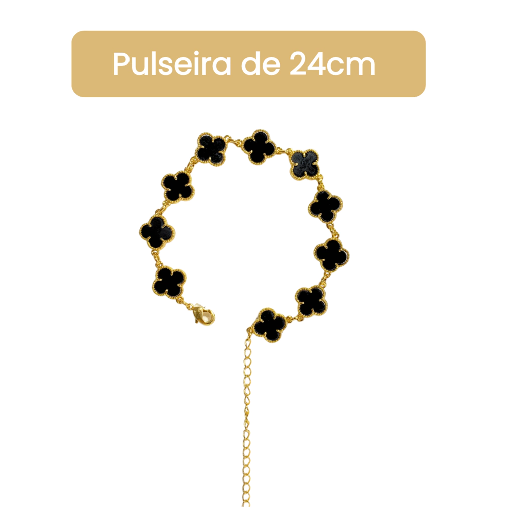 A Pulseira Trevo Modelo Virgínia, banhada a ouro 18k com detalhe em trevo preto, combina delicadeza e elegância em uma só peça. Perfeita para adicionar um toque de sofisticação e estilo ao seu dia a dia. Seu design versátil permite composições incríveis, seja usada sozinha ou com outros acessórios. Um símbolo de charme e modernidade que valoriza qualquer look.