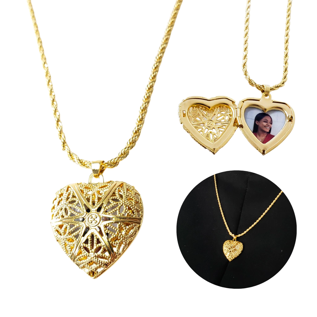 O relicário e a corrente são banhados a ouro 18k (dourado) ou banhado em prata 925 com verniz italiano para alta durabilidade (prateado) e feitos com tecnologia SEM NIQUEL sendo assim antialérgico.