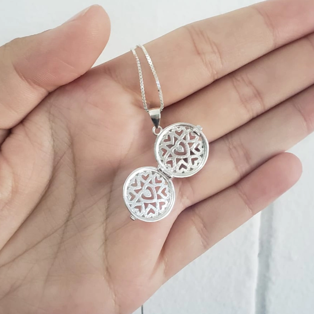 Lindo modelo de relicário na prata 925 Legítima acompanha corrente de 40cm. Perfeito para colocar feltros para aromaterapia, podendo aproveitar todos os benefícios que ela oferece no seu dia a dia e melhorando seu bem-estar físico e mental.