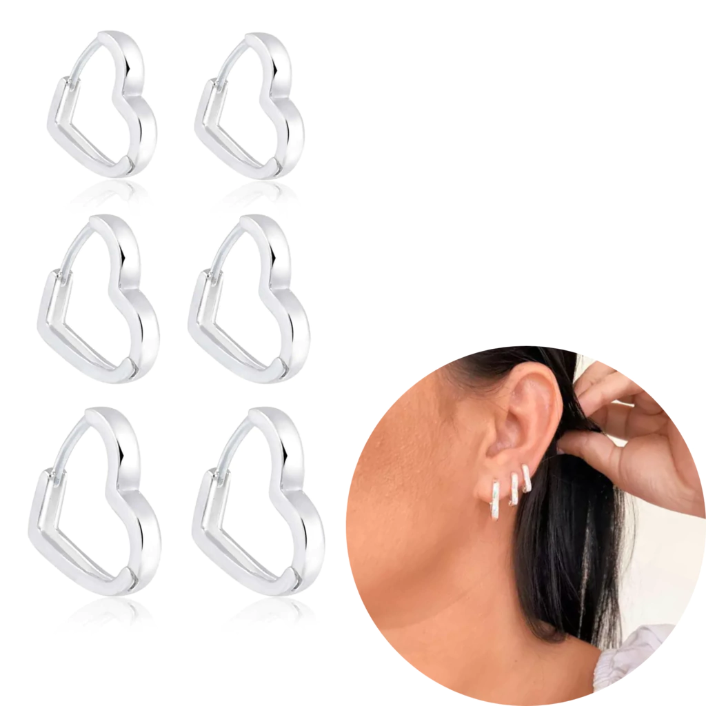 Lindo trio argolinha de coração com fecho click, ótimo para usar no seu dia a dia. Em três tamanhos, as argolas são banhadas na prata 925 e coberto com verniz italiano por cima do banho o que lhe proporciona uma excelente durabilidade, além de ser antialérgica.