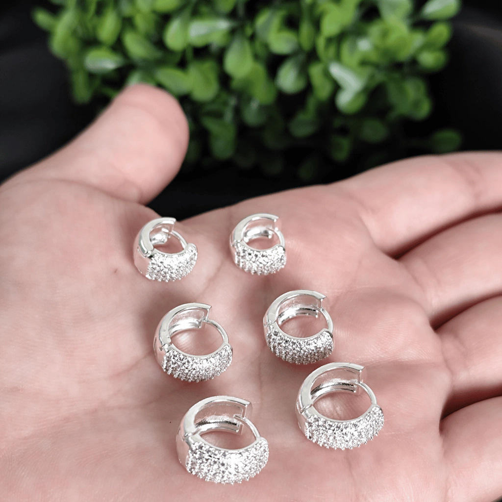 Trio de Brincos Argolas Cravejadas P, M e G Banhadas a Prata – Moda e Sofisticação