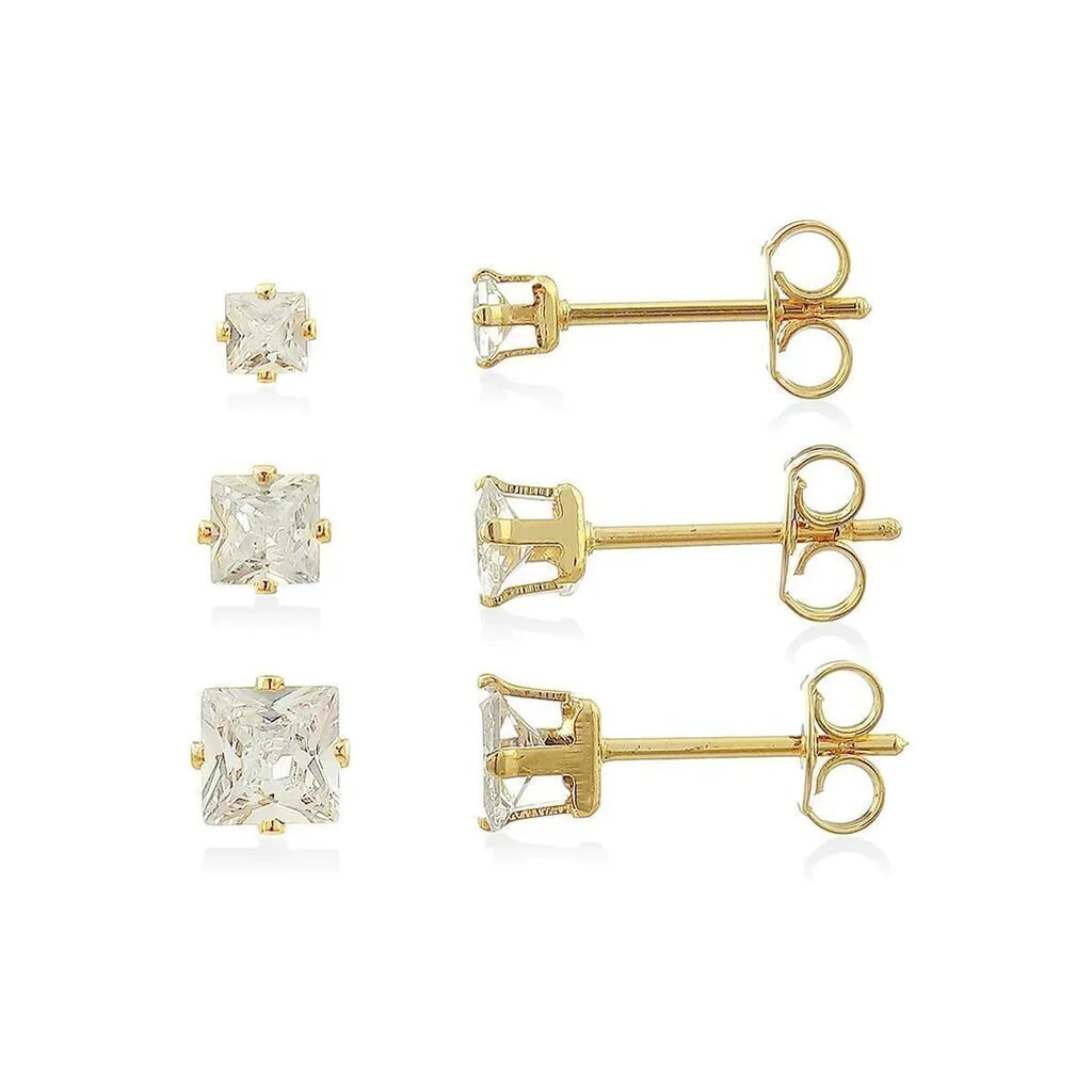 Kit com brincos trio de zircônias na cor Branca Banhada a ouro 18k antialérgico e livre de níquel ♡