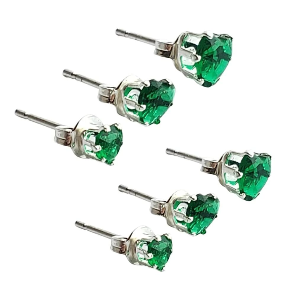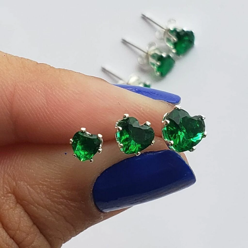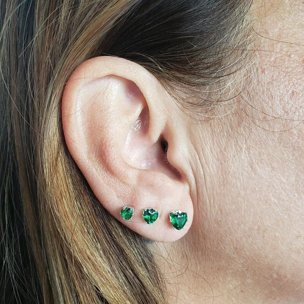Kit com brincos trio de zircônias na cor verde esmeralda Banhada a prata 925 antialérgico e livre de níquel ♡